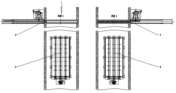 原理:当风道1通风,风门1打开,风门2关闭,此时测试风道2备用风机,将风门3关闭从而达到截流作用,打开风门4,即可测试风机。